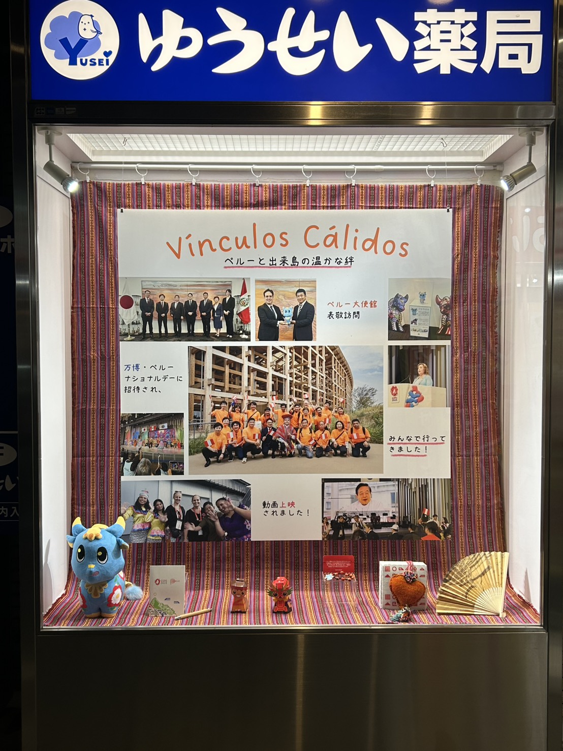 西淀川区に暮らす多くのペルーの方々と、出来島商店会が紡いできた10年以上の温かな交流。その絆を、今年8月の万博・ペルーナショナルデーで発表できた喜びとともに、ショーウィンドウデザインで表現しております。